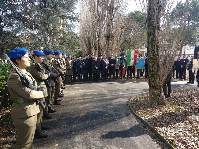 Alle ore 11.15, nel giardino dedicato alle “Vittime delle Foibe”, alla presenza delle autorità civili, militari e religiose e delle associazioni d’arma, il Prefetto Corona ha tenuto un breve intervento, e a seguire il sindaco Paolo Lucchi ha deposto una corona d’alloro ai piedi della targa che indica l’intitolazione ai tanti italiani uccisi nei massacri avvenuti al confine istriano fra il 1943 e il 1947.
