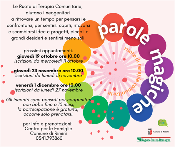 Per informazioni e iscrizioni: Centro per le Famiglie del Comune di Rimini, 05741793860