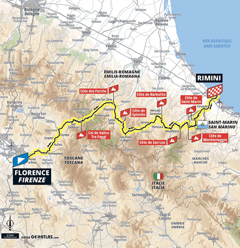 Con lo scopo di evitare flussi di traffico sulla adiacente SS71 interessata dalla competizione, Anas provvederà alla chiusura in uscita degli svincoli dell’E45 dalle ore 11.00 alle ore 16.30. Si tratta degli svincoli: San Piero in Bagno – Quarto – Sarsina Nord – Sarsina Sud e Montecastello. A questo riguardo, si ricorda che lo svincolo in uscita di Mercato Saraceno, per chi proviene da Cesena, è ancora chiuso per lavori in corso. Allo stesso modo, sempre per chi proviene da Cesena, non è praticabile l’uscita di San Carlo. Per scoprire nel dettaglio il percorso interessato: https://www.letour.fr/en/stage-1.
