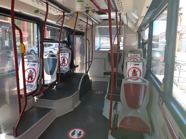 due foto sulle misure di sicurezza per i mezzi pubblici