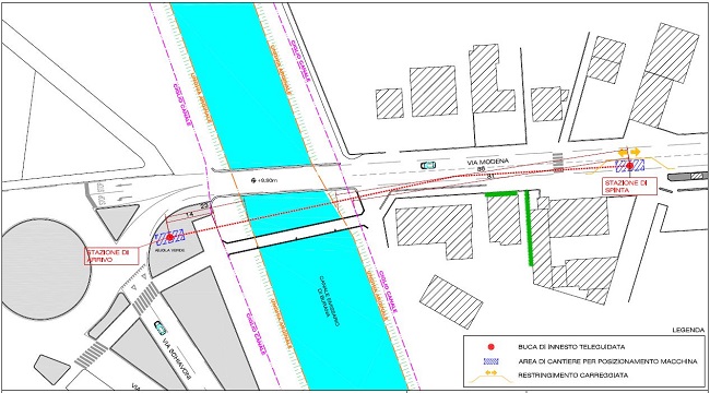 In particolare, la ditta incaricata da Tim eseguirà interventi di perforazione teleguidata per la posa dei nuovi impianti sotto l’alveo del canale di Burana. Per l’esecuzione dei lavori sarà posizionata una macchina perforatrice, in prossimità dell’intersezione tra via Modena e via Giuseppe Barbieri, dove sarà istituito il divieto di fermata per i veicoli, per l’intera durata dell’intervento. Nell’area, sarà inoltre revocata la pista ciclabile, ma resterà consentito il transito a piedi e con bici condotte a mano.
