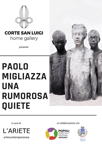 Patrizia Raimondi, direttrice della galleria dal 1983, analizzata la storia del luogo, gli ambienti messi a disposizione dalla proprietà e la mission di Corte San Luigi Home Gallery, decide di proporre l’artista catanzarese Paolo Migliazza, classe 1988. Nella sua ricerca intorno alla figura umana e alla relazione fra il soggetto e i materiali, Paolo Migliazza predilige figure di bambini o adolescenti, per creare opere in cemento e pigmenti che si rivelano all’osservatore in tutta la loro silenziosa staticità.