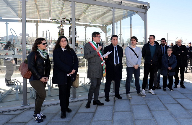 Intanto nella nuova piazza, dedicata alla ciclopedonalità e all’interscambio ferro-gomma, è stata realizzata una vera e propria Velostazione con un deposito protetto con 60 posti, otto nuove rastrelliere di “C’entro in bici” (con 32 bici gialle rispetto alle precedenti 24), venti nuovi portabici a “P” per assicurare un totale di 40 mezzi.