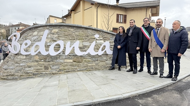 BEDONIA (PR) – Giovedì 12 febbraio 2026 è stata una giornata storica per Bedonia. Alla presenza del presidente della Regione Emilia-Romagna Michele De Pascale, del presidente della Provincia di Parma Alessandro Fadda e del sindaco di Bedonia Gianpaolo Serpagli, il borgo ha inaugurato ufficialmente il suo nuovo ingresso: un intervento di rigenerazione urbana che ha completamente riqualificato il raccordo tra via Aldo Moro, via Divisione Julia, via Monsignor Checchi e vicolo Moline.