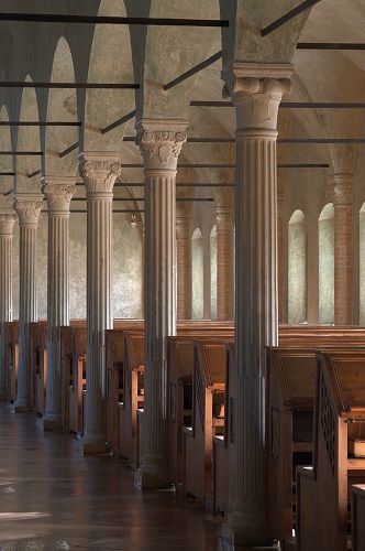 La scelta, quella «di dedicare un’attenzione privilegiata agli aspetti materiali del manufatto e del corpus manoscritto: quelle architetture segrete, per richiamare il titolo del volume, che rimandano tanto alle caratteristiche costruttive della Biblioteca quanto alle modalità di formazione e di strutturazione della raccolta libraria, ovvero l’ordine degli spazi e l’ordine dei libri», come scrive Andrea Daltri, presidente del Comitato Scientifico della Biblioteca Malatestiana. L’ampio, suggestivo apparato fotografico – a firma di GIAN PAOLO SENNI, ALBERTO DRADI MARALDI e IVANO GIOVANNINI – mira a cogliere l’essenza della Biblioteca, mostrando nuove prospettive e indagando, tra luci e ombre, la magnificenza di un progetto lungimirante e antesignano voluto da Malatesta Novello, per la sua città.