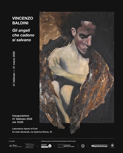 FORLÌ – “Gli angeli che cadono si salvano” è la nuova mostra di Vincenzo Baldini, in esposizione al Laboratorio Aperto di Forlì – Ex Asilo Santarelli dal 21 febbraio 2026.