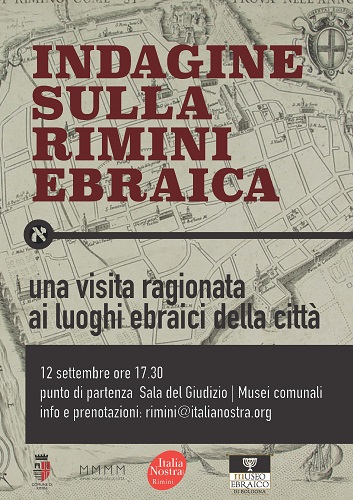 RIMINI – Giovedì 12 settembre, tra le iniziative per la XX Giornata Europea della Cultura ebraica, Italia Nostra Rimini e il Museo Ebraico di Bologna, in collaborazione con i Musei comunali e con il patrocinio del Comune di Rimini organizzano una visita ai luoghi della Rimini ebraica sotto la guida di Guido Bartolucci, Francesca Panozzo e Cristina Ravara.