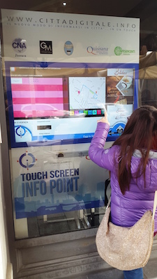La tutela dell’ambiente urbano è uno degli obiettivi che si pone questa nuova idea di comunicazione. Essa non invade piazze o strade dei centri storici con infrastrutture, bensì integra le superficie esistenti con sistemi touch interattivi, disponibili dove e quando servono, in modo totalmente gratuito per chi li consulta. Grazie a una pellicola capacitiva di ultima generazione, le superfici vetrate degli esercenti in questione si sono trasformate in grandi tablet, consultabili dall’esterno con un dito.