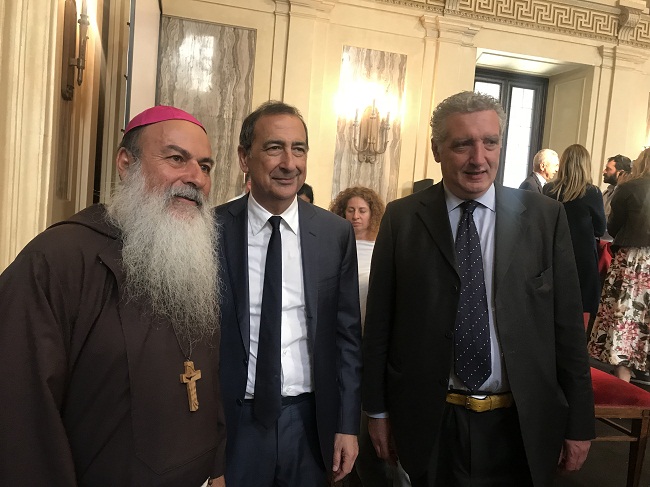 Allo stand dell’azienda ESMACH, Frate Emilio Cattaneo del Centro Missionario di piazza Cimitero Maggiore a Milano insieme a Cesare Marinoni della ‘mitica’ famiglia di panificatori meneghini, raccoglieranno le candidature di panificatori e pasticceri che intendono partecipare alla prossima edizione di ‘Pane in Piazza’ che si vorrebbe realizzare nel capoluogo lombardo per la settimana di Milano Food City in Maggio.