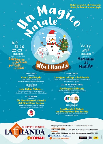 FAENZA – Dall’8 al 24 dicembre 2018 allo Shopping Center La Filanda si terranno gli appuntamenti di Natale.
