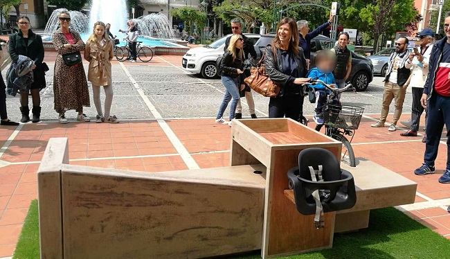 L’architetto Monica Gasperini è entrata nel dettaglio della sua creazione: “Una panchina per la Madre con tutto ciò che le occorre: dal fasciatoio per il momento del cambio pannolino, al seggiolino per adagiare comodamente il proprio bambino, ad uno schienale comodo per potersi appoggiare nel momento dell’allattamento che sia al seno che con biberon. La panchina inoltre è dotata di tutti gli strumenti tecnologici necessari. Del resto viviamo in una realtà in continuo movimento ed evoluzione e la rapidità non può che spingere ad un lavoro architettonico sempre più tecnologico ed efficace costruito per soddisfare tutte le nuove esigenze in evoluzione. Ed ecco che nasce lo spazio destinato alla tecnologia per l’oggetto Smart City dedicato alla Donna che per motivi lavorativi necessita di essere eternamente connessa. Lo stesso vale per il mondo Bike: un semplice dettaglio permette, alla donna e madre che ama vivere la città con la bicicletta, di fermarsi comodamente, rilassarsi e dedicarsi a se stessa ed al proprio bambino”.