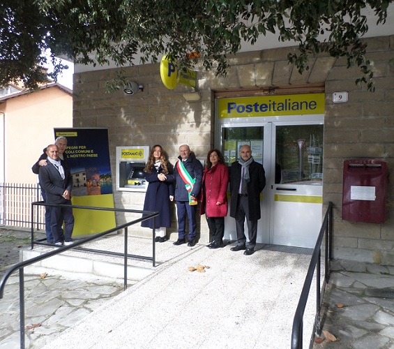 RIMINI – Poste Italiane ha inaugurato stamani, alla presenza del sindaco Guglielmino Cerbara, del vicesindaco Franco Vicini e dei rappresentanti aziendali del territorio il nuovo Atm Postamat per i Piccoli Comuni della provincia di Rimini presso l’ufficio postale di Sant’Agata Feltria, comune in cui risiedono circa 2.100 abitanti. È il secondo intervento nel Riminese dopo quello presso l’ufficio postale di Pennabilli, e il settimo in Emilia-Romagna, che ha visto la stessa installazione presso gli uffici postali di Ghiare di Berceto (PR), Sant’Agata sul Santerno (RA), Dovadola (FC), Fontanelice (BO) e Cerignale (PC).