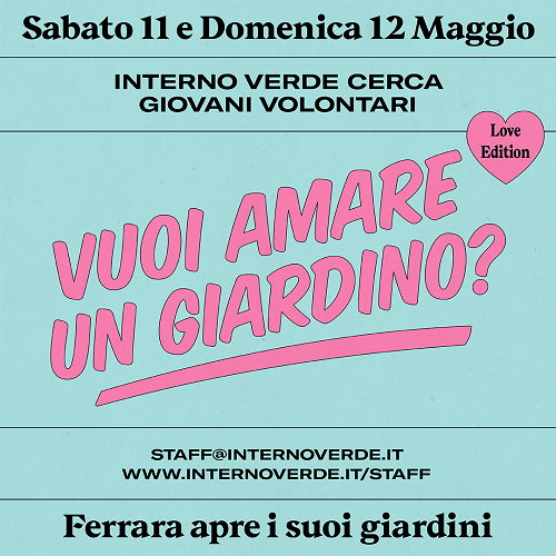 FERRARA – Avete meno di trent’anni e siete appassionati di giardini e giardinetti, alberi secolari, orti aromatici e pareti di rampicanti? Siete inguaribili curiosi? L’associazione Ilturco propone agli under30 che vivono, studiano o lavorano a Ferrara di partecipare attivamente a Interno Verde 2019, il festival che sabato 11 e domenica 12 maggio aprirà eccezionalmente al pubblico i giardini più suggestivi del capoluogo estense.