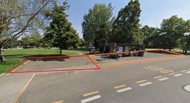 – 1a fase: il cantiere si concentrerà sull’area dell’attuale fermata (nella foto la zona evidenziata in arancione), lasciando l’attigua area, di circa 12 metri di lunghezza, verso il centro città, per la sosta, il carico e lo scarico dei passeggeri;