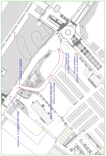 – nell’ambito dei lavori di riqualificazione di via Darsena, da lunedì 4 a venerdì 8 luglio 2022 sono in programma lavori sull’intera carreggiata stradale, il traffico – già a senso unico da via Bologna in direzione corso Isonzo – verrà deviato all’interno del parcheggio ex MOF. Ingresso e uscita al parcheggio saranno invece collocati in Corso Isonzo (come da disegno allegato).