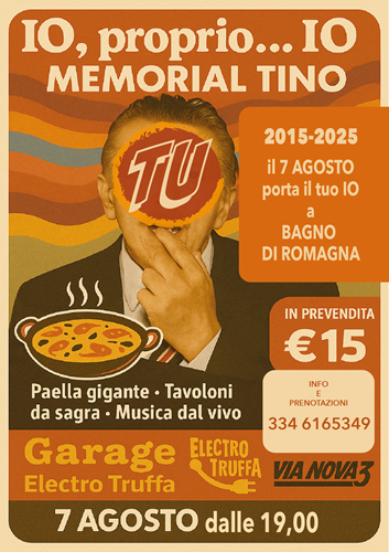 A dieci anni esatti da quella serata memorabile, l’evento rinasce con un concept rinnovato. “IO, PROPRIO IO – Memorial Tino” non è solo un tributo al leggendario DJ, ma una celebrazione dell’autenticità e dell’energia che Tino rappresentava e che caratterizza lo spirito romagnolo.