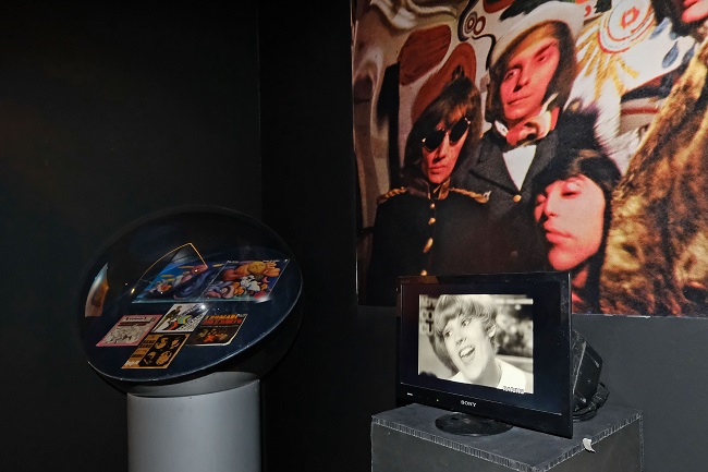 Protagonista in una sala è la scena musicale con l’Equipe 84, I Nomadi, Caterina Caselli e Francesco Guccini, fra dischi, manifesti, il legame con la moda e i dancing Snoopy e Nuovo Mondo, la fusione con la fotografia di Carlo Savigni e Mario Schifano, il design delle chitarre elettriche di Wandrè e di quella a forma di fucile di Urano Borelli del gruppo Johnny e i Marines.