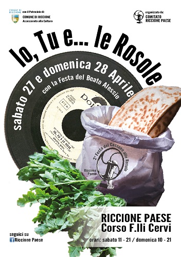 RICCIONE (RN) – Sabato 27 e domenica 28 aprile, in occasione della Festa del Beato Alessio, è in programma a Riccione Paese la seconda edizione di Io, tu e le rosole, la celebrazione delle prelibate erbe di campo e del loro tradizionale abbinamento con i cassoni.
