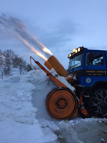 MODENA – La turbina spartineve della Provincia di Modena, al lavoro da alcuni giorni nelle Marche, sta completando la pulizia della strada provinciale 93 tra i comuni di Palmiano e Venarotta, in provincia di Ascoli Piceno.