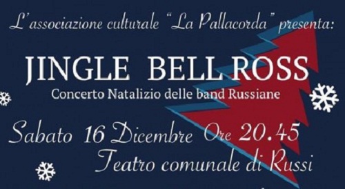 RUSSI (RA) – Ormai appuntamento tradizionale delle iniziative natalizie russiane, sabato 16 dicembre alle 20.45 l’Associazione Culturale “La Pallacorda” porterà a Teatro le band di Russi per “Jingle Bell Ross”, il concerto natalizio realizzato interamente da formazioni musicali russiane.