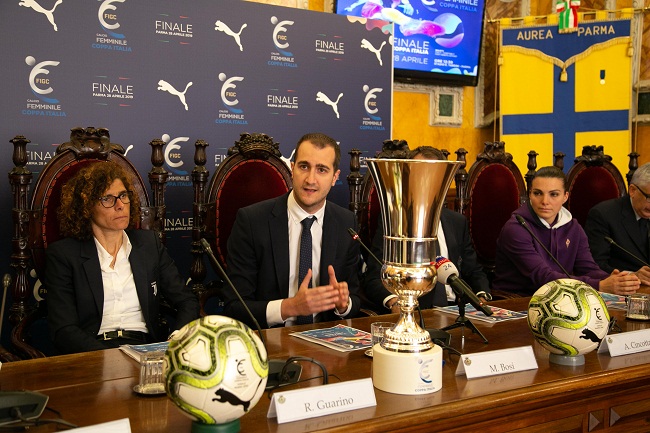 Proprio a Parma, oggi, si è svolta la conferenza stampa di presentazione della finale, con la presenza dei due tecnici delle finaliste, Rita Guarino e Antonio Cincotta, e delle calciatrici Cristiana Girelli e Alia Guagni, insieme al Vicesindaco con delega allo Sport del Comune di Parma Marco Bosi, al Direttore Generale della FIGC Marco Brunelli, della CT della Nazionale Femminile Milena Bertolini.