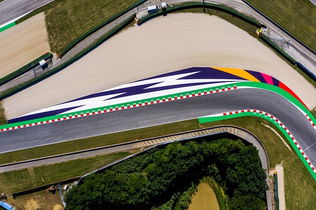 Sul rettilineo che porta alla curva della Quercia è raffigurata una saetta, simbolo della velocità, in un tratto della pista dove la manopola del gas spinge forte la moto; al Tramonto la via di fuga propone l’immagine del sole calante (al Tramonto è stata posizionata la long lap penalty) mentre alle curve 14 e 15, al Carro, risalterà il claim ‘Ride on Colors’, che accompagna la nuova brand identity; alla curva 16, la Misano che introduce al rettilineo finale, la texture si completa richiamando la bandiera a scacchi e all’interno della curva c’è il naming della Repubblica di San Marino.