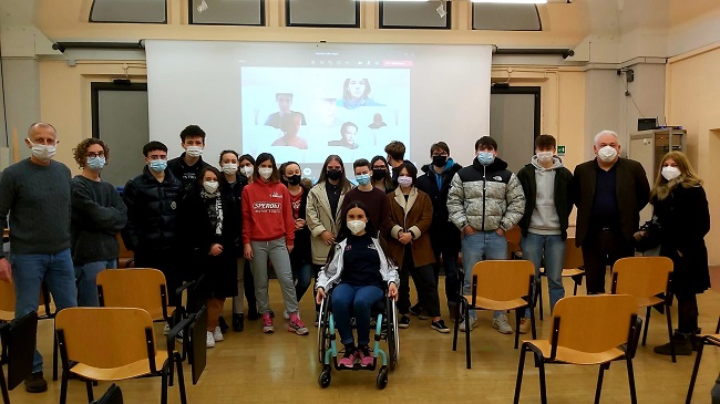 Dopo gli onori di casa, è stata la volta dell’intervento dell’handbiker parmigiana. L’atleta tesserata per Sport Center Parma e Anmil Sport, oltra essere protagonista di Obiettivo 3 progetto di Alex Zanardi, ha ricordato i momenti belli vissuti tra i banchi del Toschi e la difficoltà di aver iniziato l’università per di più con le restrizioni causate dal Covid: “Questa scuola credo sia davvero unica perché è dinamica e creativa, sei spronata costantemente a migliorarti tra materie innovative e strumenti tecnologici – ha ricordato Veronica-. Il back ground delle superiori lo porto con me anche all’università: mi sono iscritta a Comunicazione e media contemporanei per industrie creative a Parma. Peccato che la situazione Covid mi impedisca di vivere a pieno la nuova dimensione universitaria. Il sistema di studio è molto diverso, ci vuole un’importante capacità organizzativa”.