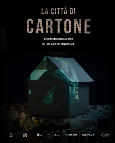 Il film, attraverso la voce narrante dello scrittore Ermanno Cavazzoni , racconta una città parallela e poco visibile popolata da persone che non hanno una casa. La voce scruta e commenta con discrezione questa popolazione coi loro giacigli precari dalle pareti invisibili e forse solo immaginate. L’avvicinamento progressivo dello sguardo ci permette di varcare la soglia di queste stanze virtuali, dove le vite di chi ci abita vengono suggerite più che raccontate. Immagini domestiche si alternano evocando vite sognate di una quotidianità perduta o forse solo desiderata. Documentare l’inconsistenza delle poche cose di cui questa popolazione si circonda, dare concretezza all’invisibile, è ciò che LA CITTÀ DI CARTONE vuole raccontare.