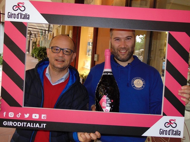 Proseguono intanto gli allestimenti in rosa: bandierine, striscioni e palloncini compaiono in ogni angolo. In questi giorni i commercianti del centro hanno allestito con creatività le vetrina dei propri negozi esponendo alcune foto tratte dall’Archivio Sirotti, anche collocate per le vie e le piazze del centro storico. Un grande striscione rosa è stato invece collocato sul prato della Rocca Malatestiana: Cesena saluta il Giro!