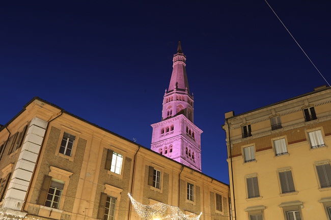 MODENA – Ghirlandina tutta rosa per una serata. La Torre civica simbolo di Modena, infatti, è stata illuminata in rosa oggi, martedì 29 gennaio, a 102 giorni dall’avvio della 102 ª edizione del Giro d’Italia. L’iniziativa, che ha dato il via al conto alla rovescia per la prestigiosa gara ciclistica che quest’anno parte da Bologna sabato 11 maggio, riguarda i principali monumenti e luoghi simbolo delle 36 città di tappa.
