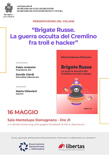 Lunedì 16 maggio alla sala Montelupo di Domagnano Asi e Libertas.sm organizzano una serata pubblica con Marta Ottaviani, giornalista e scrittrice autrice di “Brigate Russe”