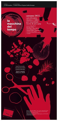 La macchina del tempo mette a frutto il lavoro fatto negli anni per il progetto Archivio vivo, dedicato al racconto della storia della compagnia Le belle bandiere, alla sua attività in Romagna, alla valorizzazione dei suoi archivi cartacei, fotografici e audio video attraverso spettacoli realizzati in particolari luoghi della memoria dove dialogano le diverse arti.
