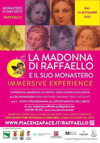 - Esperienza immersiva in cripta, per rivivere attraverso tecnologie digitali la storia del monastero di San Sisto e della Madonna sistina di Raffaello (visita libera) +Visita guidata esclusiva all’ex monastero (area militare caserma “Ten. F. Nicolai”)