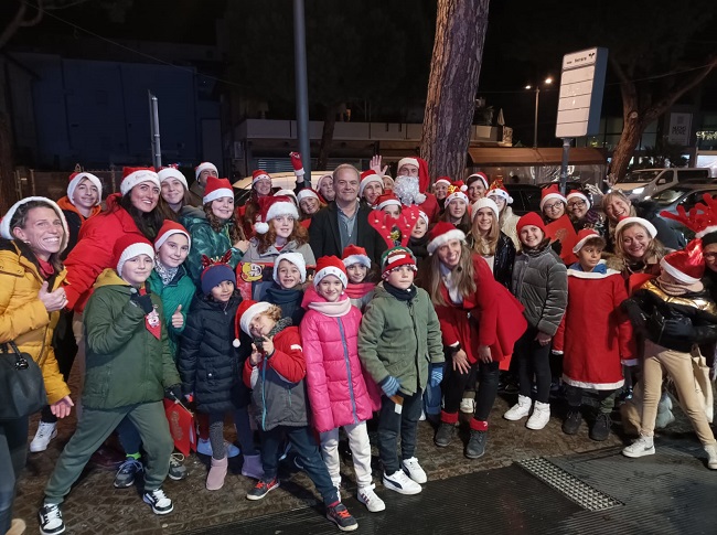 CESENATICO (FC) – Tutti vestiti da elfi e folletti, alle 18 in punto di sabato, sotto l’occhio vigile di qualche genitore e magistralmente diretti dalla maestra Lara, decine di bambini si sono presentati davanti alla sala giochi “Miss America” di viale Carducci e hanno cominciato ad intonare i loro canti natalizi. Un’esibizione ancora una volta suggestiva che ha confermato “Christmas Carols” come una delle iniziative di solidarietà più belle del Natale di Cesenatico.
