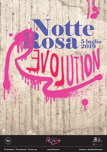 Ogni anno “La Notte Rosa” si contraddistingue per una nuova immagine coordinata, e quella di quest’anno è (a cura di Expansion Group) “Pink R-evolution”: a 30 anni dagli eventi storici che hanno segnato la volontà di superare i confini e di abbattere muri, l’obiettivo di questa edizione è proprio quello di riscoprire le relazioni e ritrovare il piacere di stare insieme, uniti anche nelle differenze.
