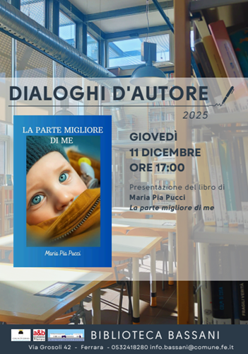 FERRARA – È la storia del percorso divergente di due gemelle quella raccontata da Maria Pia Pucci nel libro dal titolo “La parte migliore di me” che giovedì 11 dicembre 2025 alle 17:00 sarà protagonista dell’appuntamento con “Dialoghi d’autore”, alla biblioteca comunale Bassani (via Grosoli 42, Barco, Ferrara).