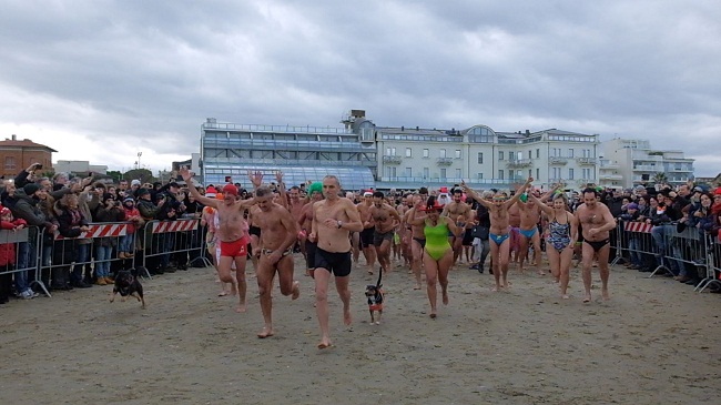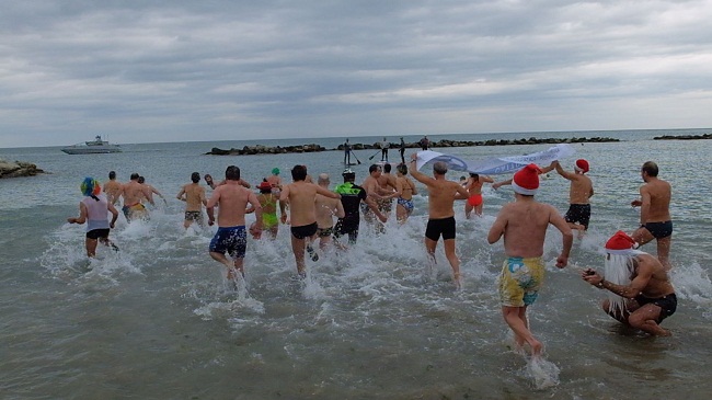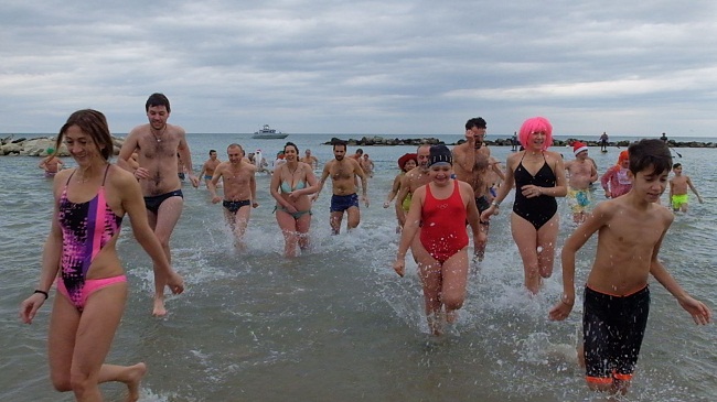 L’alba del 2018 ha visto anche lo svolgersi del rituale bagno di capodanno. Diverse centinaia di persone questa mattina hanno dato il benvenuto al nuovo anno nelle acque gelide della baia di Cattolica.