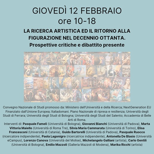 FERRARA – Ha per titolo “La ricerca artistica ed il ritorno alla figurazione nel decennio Ottanta. Prospettive critiche e dibattito presente” il Convegno Nazionale di Studi in programma giovedì 12 febbraio 2026 dalle 10:00 alle 18:00 nella sala Agnelli della biblioteca comunale Ariostea (via delle Scienze 17, Ferrara).