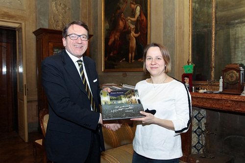 MODENA – Il sindaco Gian Carlo Muzzarelli ha ricevuto in Municipio, ieri, martedì 7 settembre, la scacchista modenese Olga Zimina che parteciperà, come unica rappresentante italiana, al campionato mondiale femminile di scacchi in programma a Teheran dal 10 febbraio. Muzzarelli le ha augurato “un grande in bocca al lupo per la difficile e prestigiosa competizione che dovrà affrontare” e le ha regalato un libro fotografico e una spilletta con lo stemma del Comune Modena da appuntare alla giacca come portafortuna.