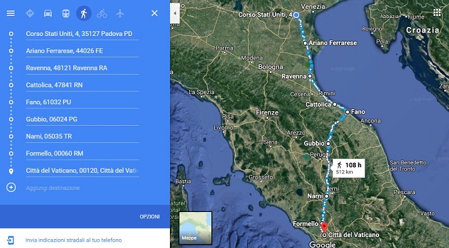 A Ravenna, Rimini, Narni e Formello sono previsti degli incontri con le amministrazioni comunali e la cittadinanza. Il servizio di scorta e viabilità sarà garantito dal Comando Provinciale dei Carabinieri di Padova.
