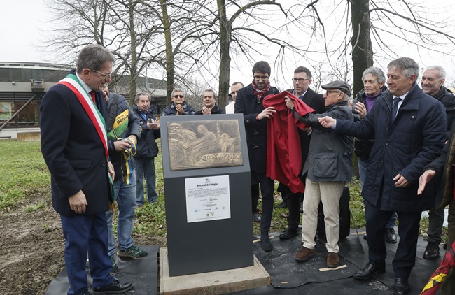MODENA – Ricorda il “Record del Miglio”, prima manifestazione motoristica della storia cittadina’, che si svolse il 9 maggio 1909 sul rettilineo che dalla Crocetta porta a Navicello e che fu ripetuta l’anno successivo decretando una sorta di inizio di quella che diventerà la Motor Valley, la targa scoperta ieri mattina presso l’area verde della filiale di Banco Bpm in via Torrazzi 8.