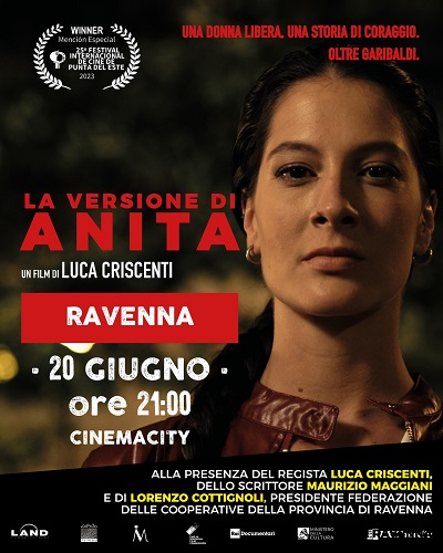 RAVENNA – Una donna libera, una storia di coraggio, oltre Garibaldi. Martedì 20 giugno alle 21 arriva al Cinema City di Ravenna “La versione di Anita”, film biografico di Luca Criscenti dedicato all’eroina dei due mondi Ana Maria de Jesus Ribeiro da Silva. Insieme al regista interverranno lo scrittore Maurizio Maggiani e Lorenzo Cottignoli, presidente della Federazione delle Cooperative della Provincia di Ravenna.