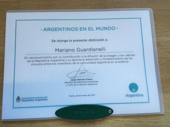 Il prestigioso riconoscimento per il contributo alla promozione dell’immagine e dei valori della Repubblica Argentina e allo sviluppo dei rapporti tra i membri della comunità argentina all’estero è stato infatti assegnato a Mariano Guardianelli, Chef del ristorante riminese “Abocar due cucine” di via Farini, che si è distinto nell’arte culinaria tanto da vedersi assegnare alla fine dello scorso anno la sua prima Stella Michelin.