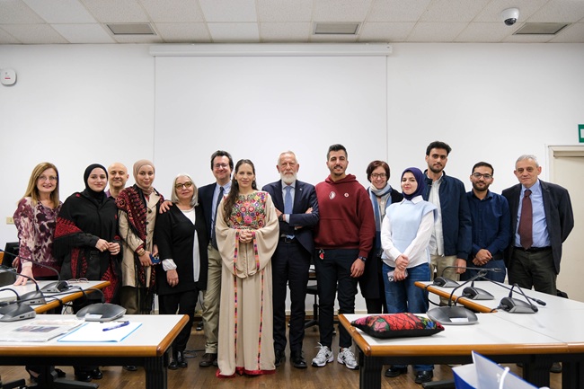 S.E. Mona Abuamara, accolta dal Rettore Paolo Martelli, ha incontrato studentesse e studenti arrivati da Gaza nei mesi scorsi attraverso i corridoi universitari, unitamente ai docenti, alle docenti e al personale Unipr che hanno seguito i progetti di accoglienza.