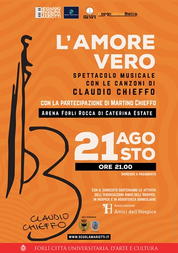 FORLÌ – Giovedì 21 agosto è in programma presso l’Arena Rocca di Caterina lo spettacolo musicale dedicato a Claudio Chieffo dal titolo “L’amore vero”, che prende spunto dalle canzoni scritte dal cantautore forlivese.