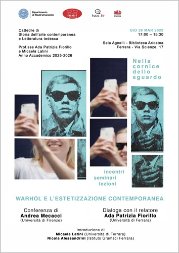 L’incontro, dal titolo ‘Warhol e l’estetizzazione contemporanea’, è a cura del Dipartimento di Studi Umanistici dell’Università di Ferrara e dell’Istituto Gramsci Ferrara, in collaborazione con l’Istituto di Storia Contemporanea di Ferrara.