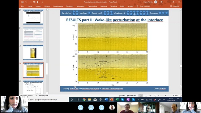 Diana Petrolo ha difeso la tesi “Mixing processes and buoyancy transport in stratified turbulent flows” di fronte alla Commissione costituita da Andrew W. Woods dell’Università di Cambridge (UK), Paolo Blondeaux dell’Università di Genova e Sandro Longo dell’Università di Parma, con la massima valutazione et Cum Laude.