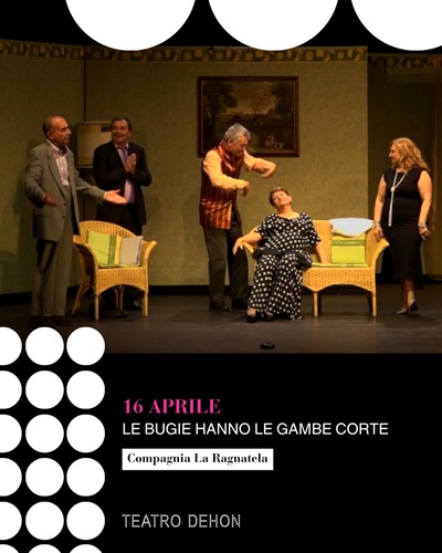 Al Teatro Dehon di Bologna giovedì 16 aprile ore 21 in scena la Compagnia La Ragnatela con “Le bugie hanno le gambe corte“, una commedia brillante di Vittorio Barino e Martha Fraccaroli, per la regia di Carlo Picchi.