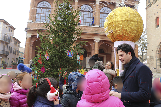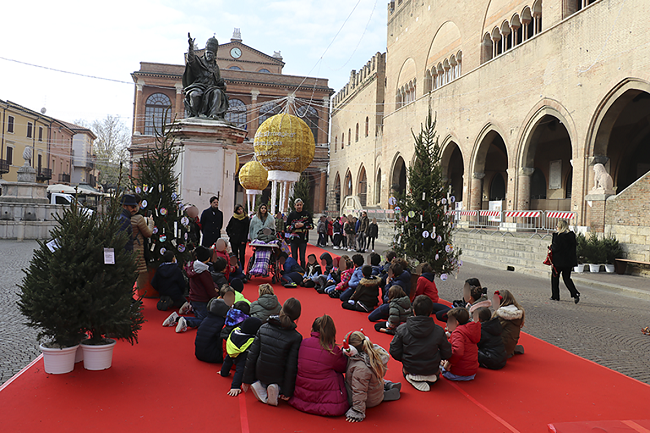 RIMINI – Sono stati gli alunni delle scuole elementari di Maestre Pie, Sant’Onofrio e C.E.I.S i primi addobbare, questa mattina,gli alberi di Natale che impreziosiscono Piazza Cavour per il periodo delle festività. Le scuole, in linea con il tema di quest’anno, hanno voluto omaggiare Federico Fellini attraverso un lavoro di approfondimento svolto in classe e addobbi dedicati, tra cui quelli portati oggi in piazza Cavour.