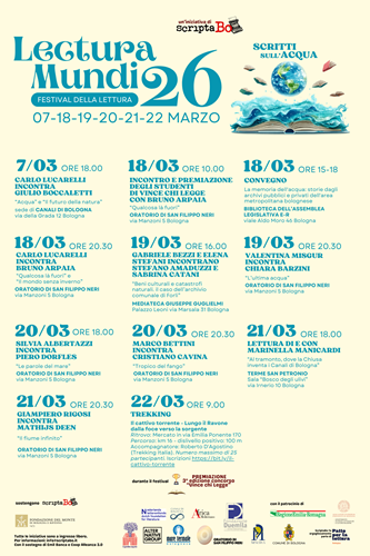 BOLOGNA – ScriptaBo, l’associazione degli scrittori e delle scrittrici di Bologna e dintorni, presenta alla città la terza edizione di Lectura Mundi, il festival della lettura che quest’anno è dedicato all’acqua.